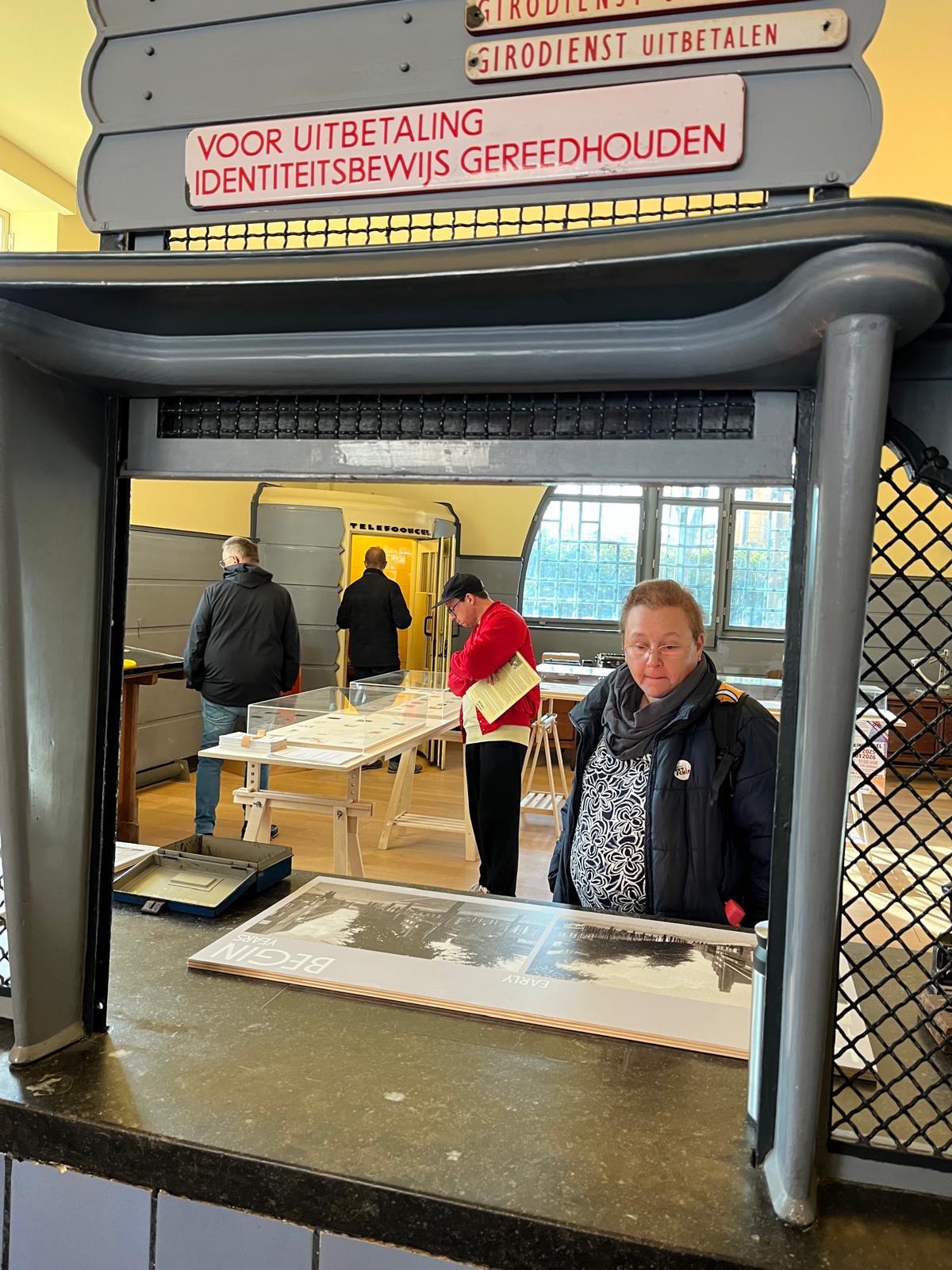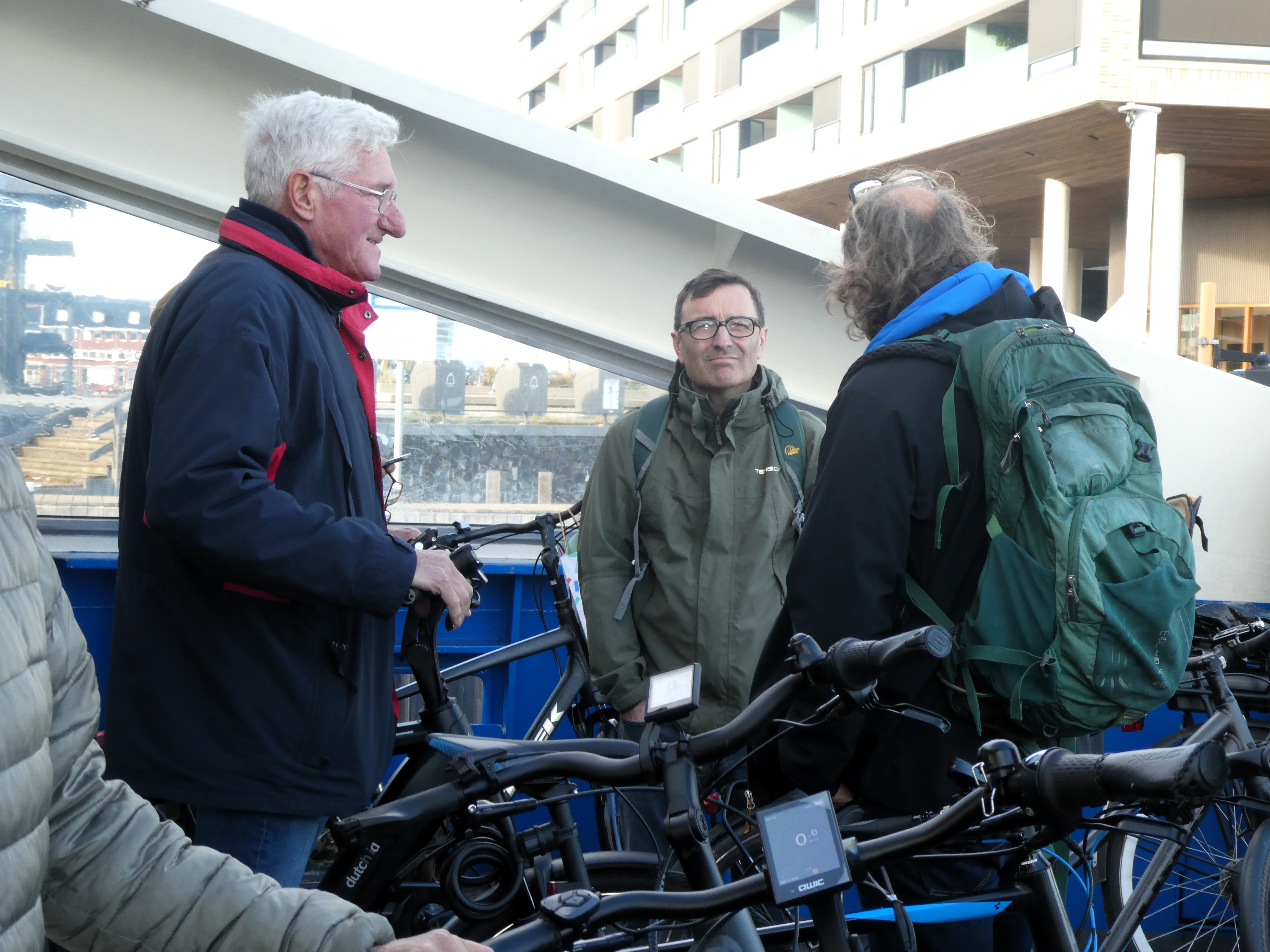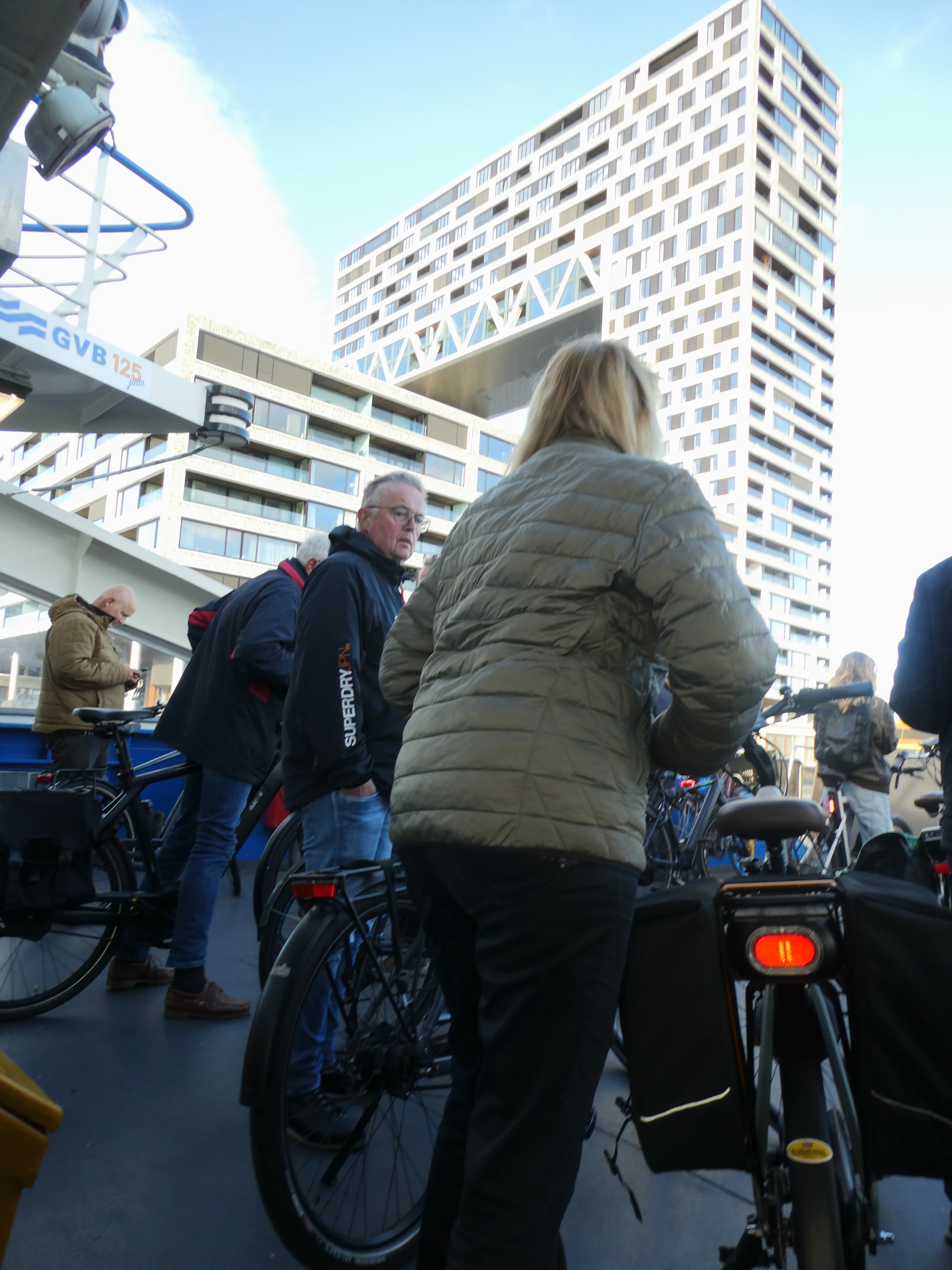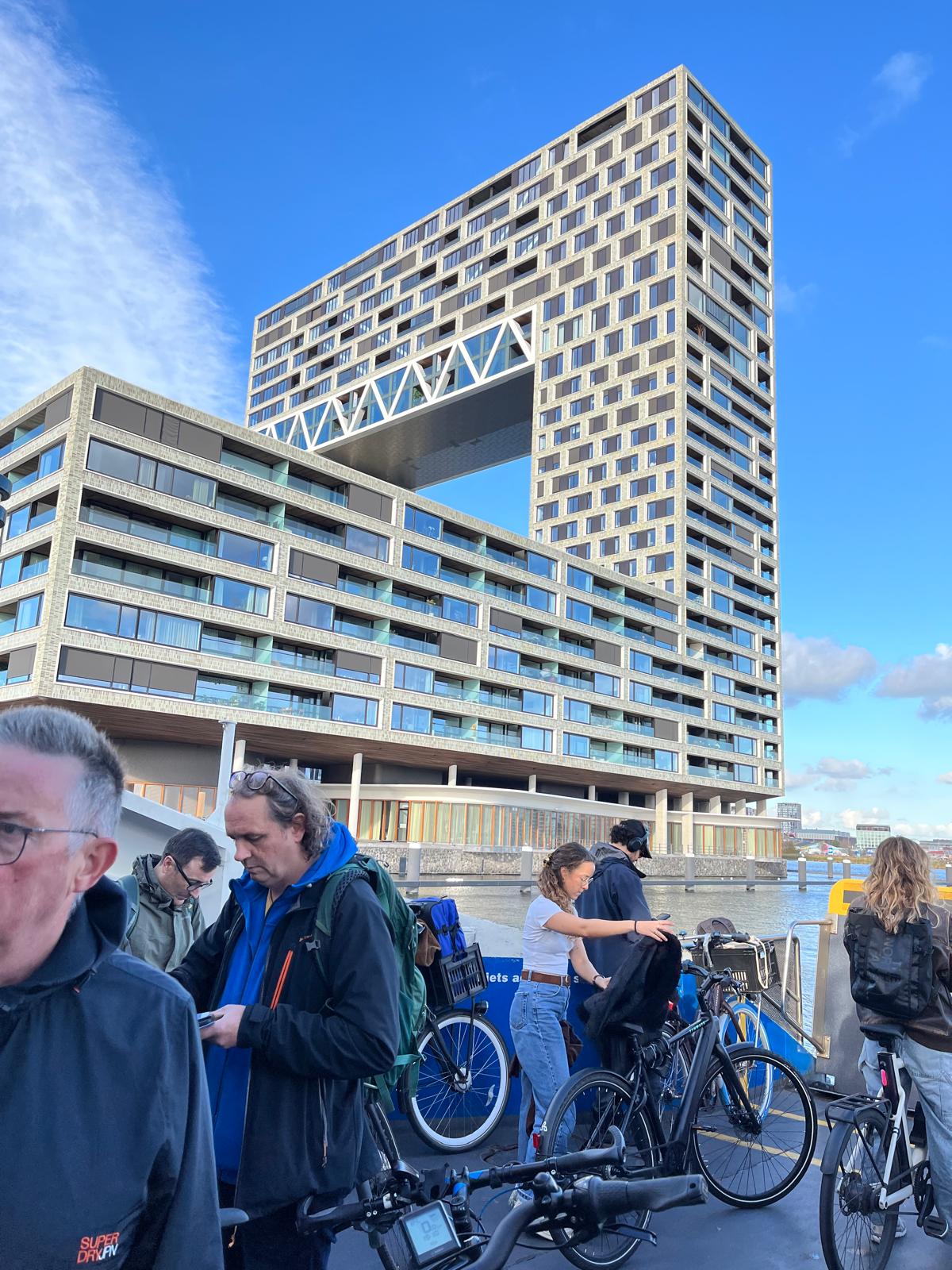 Na de veerpont over het IJ naar het KSNM-eiland zijn we over het JAVA-eiland gefietst en via de beroemde demontabele Jan Scheaferbrug (hij was weer open nadat het gedemonteerd was voor SAIL) naar het pakhuis de Zwijger gefietst. Langs het Centraal Station kwamen we uiteindelijk uit bij het museum Het Schip. Er zijn twee soorten mensen in Nederland, zij die nog nooit in dit museum zijn geweest en er geen voorstelling van kunnen maken (de naam is misleidend) en zij die het museum hebben bezocht en laaiend enthousiast zijn (en snappen waar de naam voor staat). Met name de rondleiding is erg bijzonder. Naast alle architecturale kenmerken zagen we ook het oude postkantoor. We werden we een flink eind terug in de tijd en in onze jeugdherinneringen geslingerd. Het museum leverde een serie mooie foto’s op en leuke gesprekken. In de middag zijn we met een veerpont weer het IJ overgestoken naar het dorp Buiksloterham. Via een korte tocht kwamen we uit op de NDSM werf. Bij Pllek (geen typefout) hebben we op een overvol terras in de zon heerlijk geluncht. We hebben de grote hallen van de voormalige werf bezocht en Jos Jager heeft ons de imposante hellingbaan laten zien.