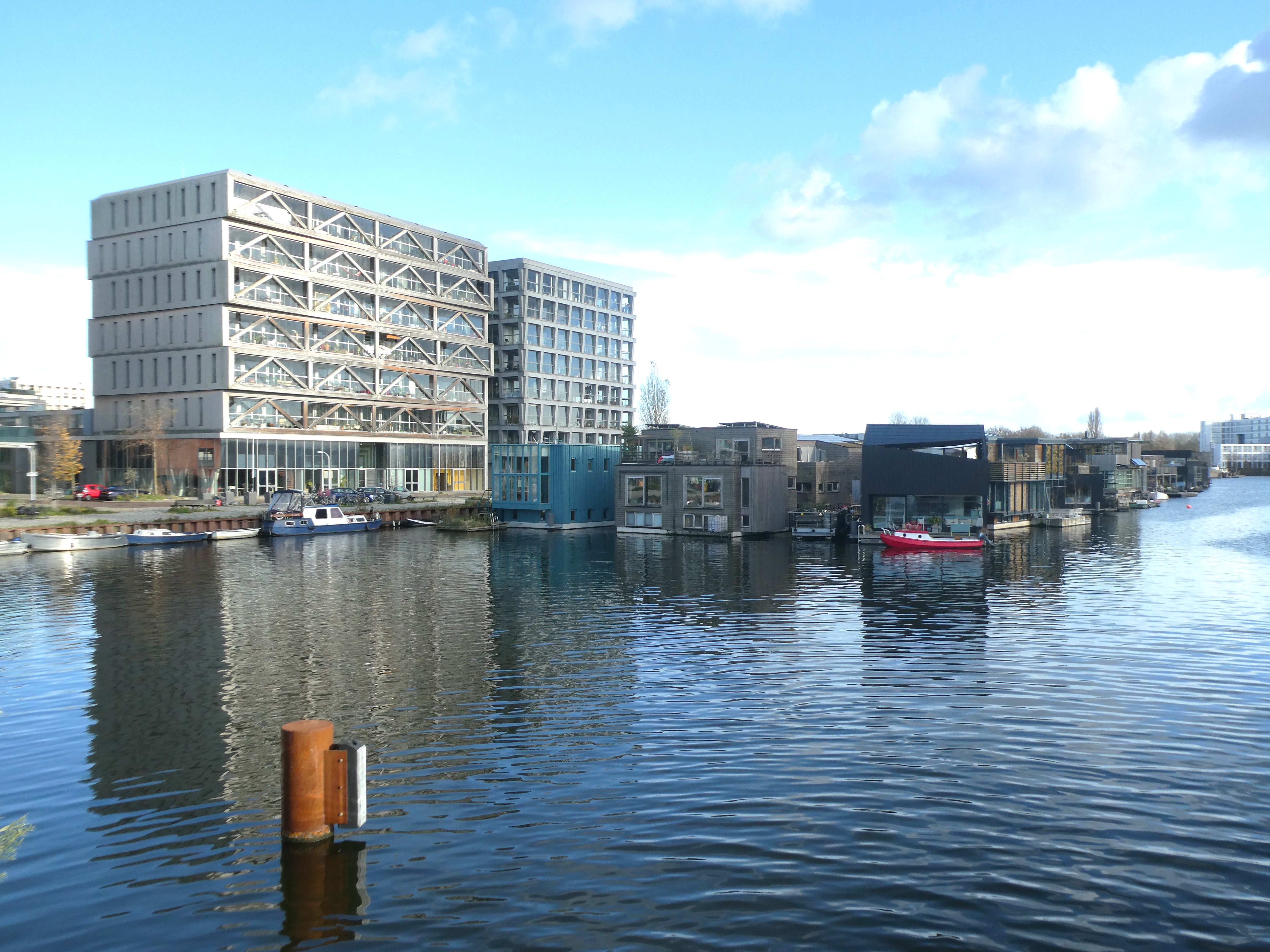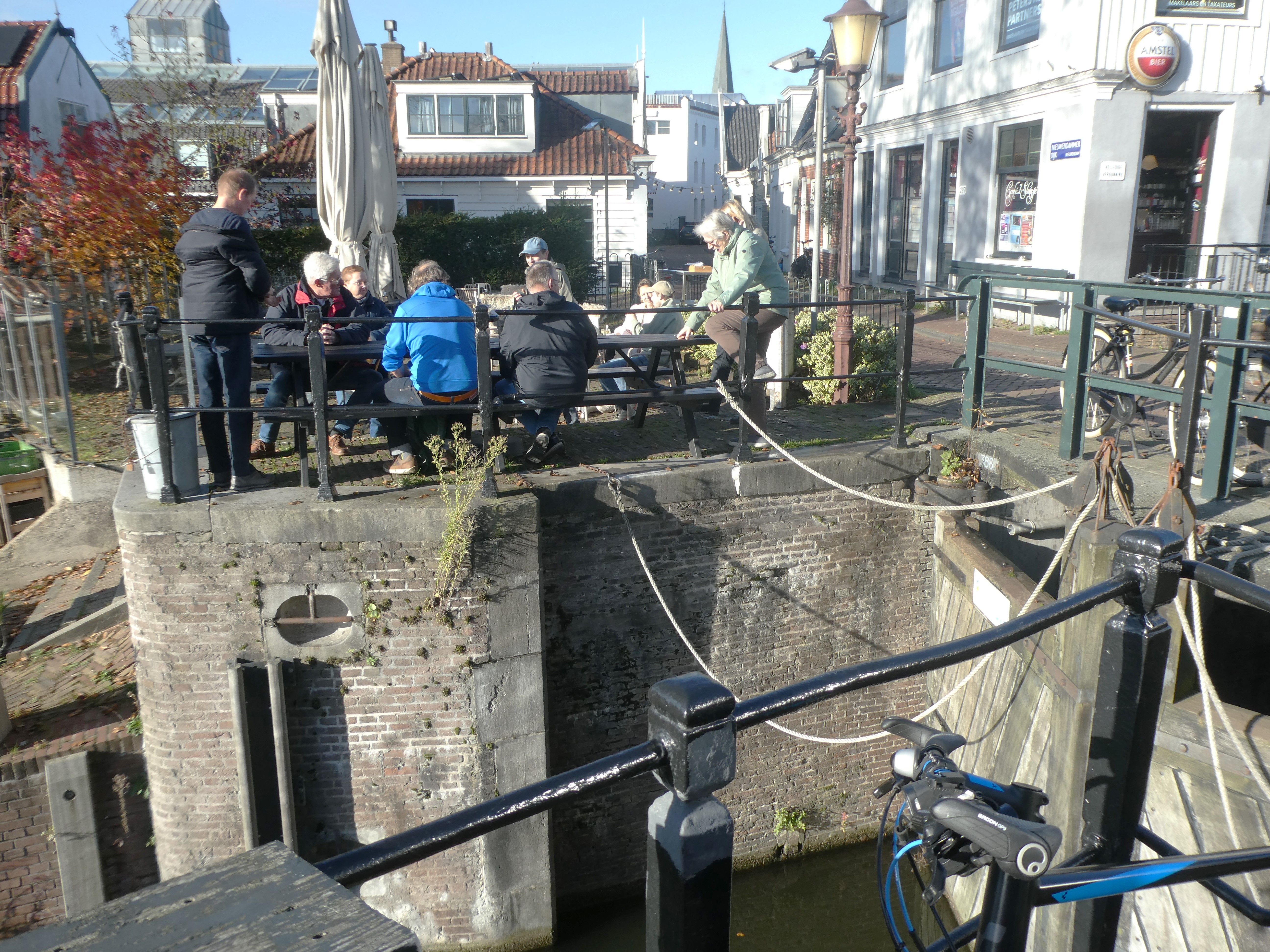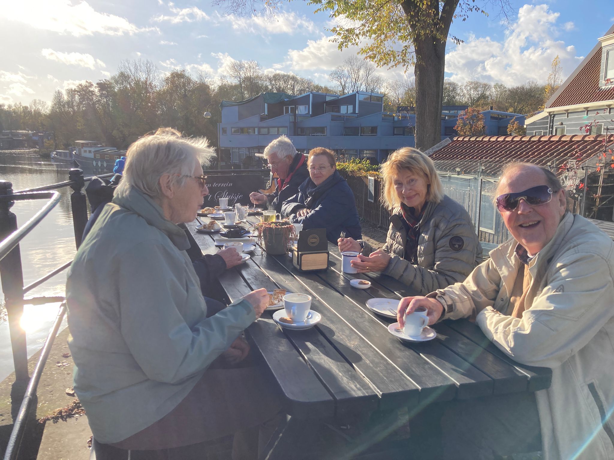De weergoden waren ons gunstig gezind deze dag. We zijn in de ochtend gestart vanaf de P+R Zeeburg 3 aan de zuidkant van het IJ in de nieuwe wijk Zeeburg. Via de Zuiderzeeweg-brug fietsten we door het eerste dorp Schellingwoude. De nauwe straatjes en mooie dijkhuisjes gaven al gelijk een goed beeld wat men kan verstaan onder dorpen aan het IJ. We fietsten de Nieuwendammerdijk af (leukste onbekendste straat van Amsterdam?) door het dorp Nieuwendam en kwamen aan bij het pittoreske Café het Sluisje. Het was nog rustig en we konden op het terras plaatsnemen. Na koffie en heerlijke appeltaart vervolgde we onze weg. Het terras bleek wel gevaarlijk te zijn met trappen en verhogingen. Een buurtgenoten maakte een bijna fatale val, waarvan de afloop gelukkig meeviel. Via het Museum Amsterdam-Noord (was niet open) zijn we kriskras door de Vogelbuurt gereden. Dit was de eerste buurt met architectuur van de Amsterdamse school, met kleine maar mooie arbeidershuisjes. Omdat de veerpont over het IJ op de Zamenhofstraat even op zich liet wachten hebben we een extra rondje gereden in deze buurt. Het was een bijzondere verzameling huisjes en hofjes, gezellig en knus, en zeker met een dorpskarakter.