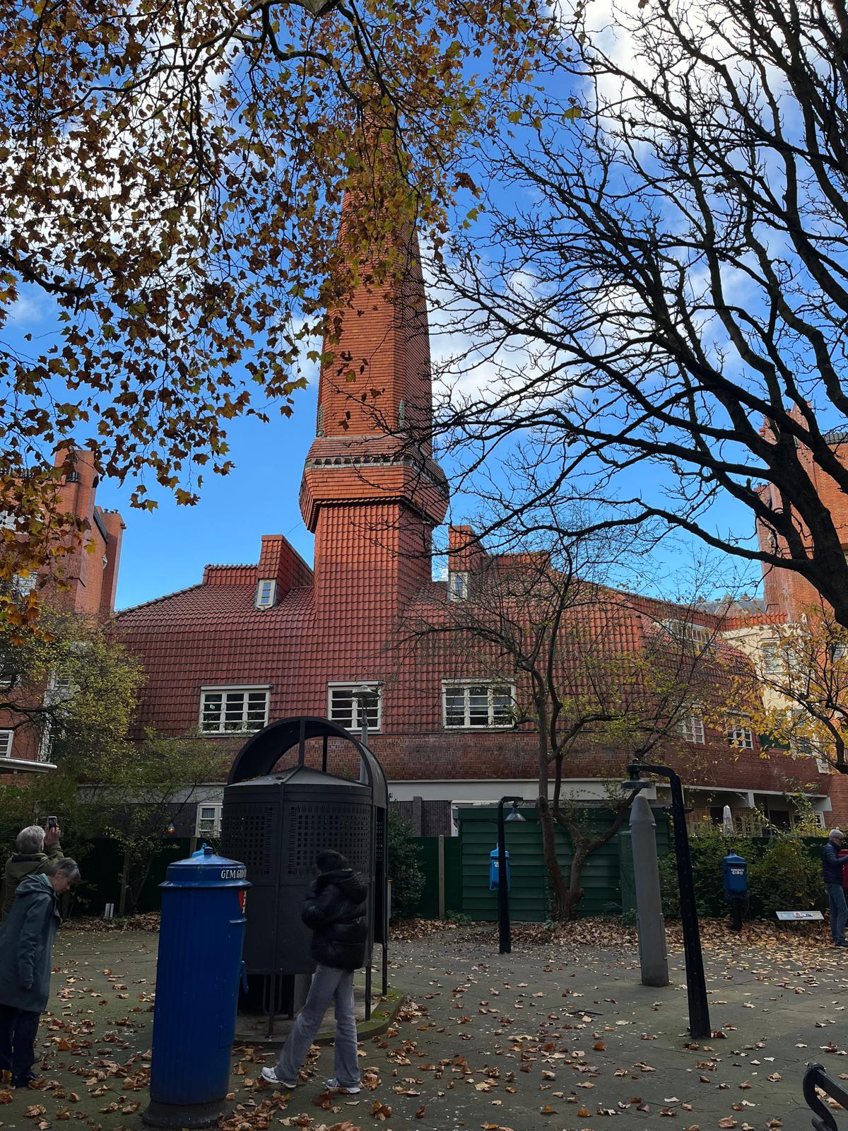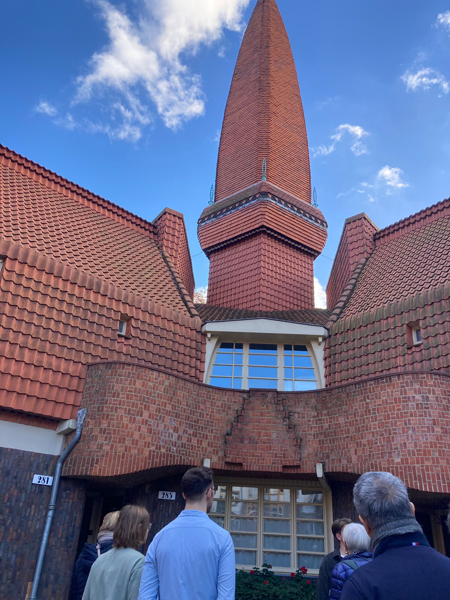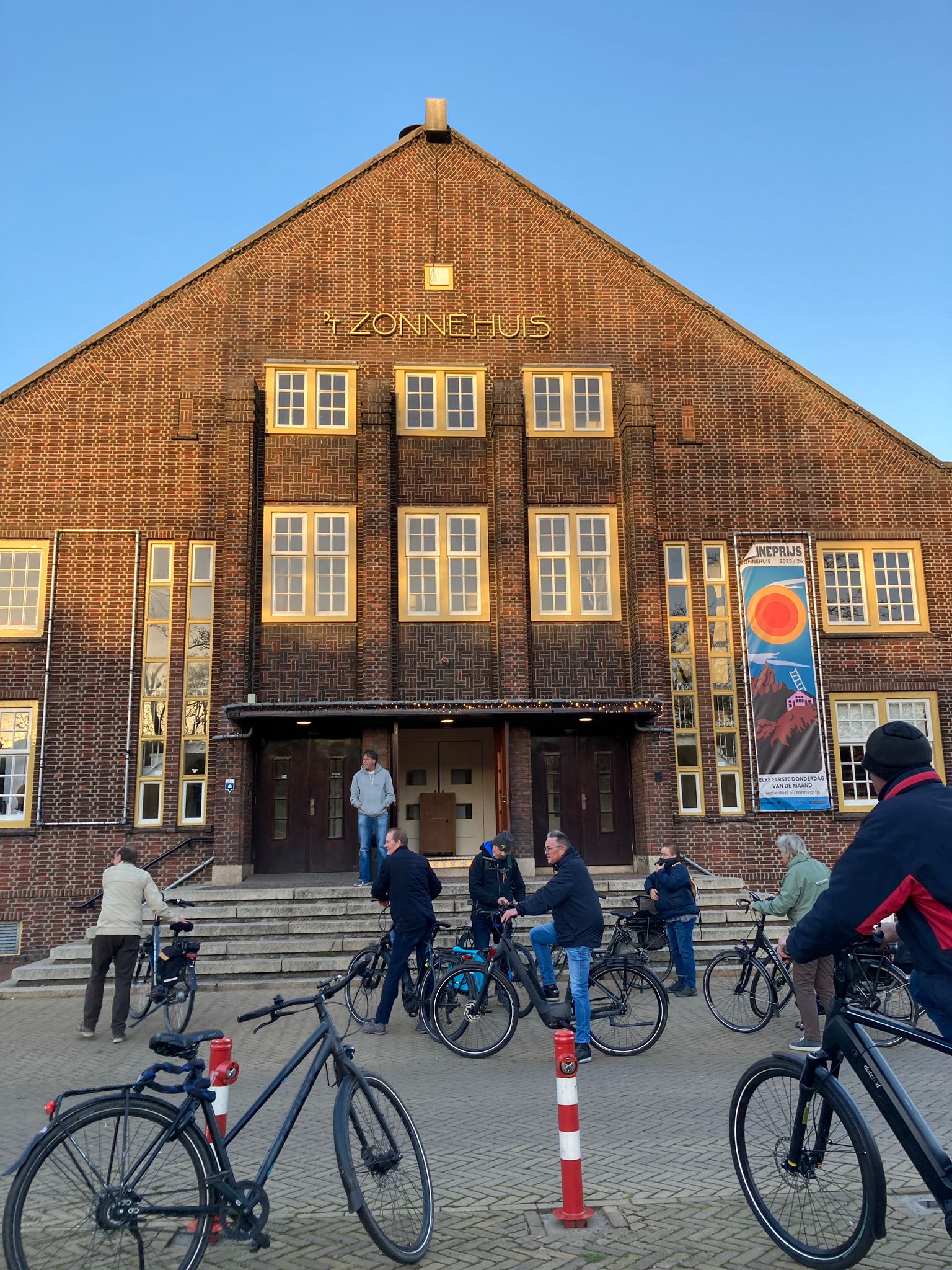 We eindigde de dag in Tuindorp Oostzaan bij het Zonnehuis. Tuindorp Oostzaan (vooral de gehele omgeving van het Zonneplein), is ontworpen in de Amsterdamse Schoolstijl. Geheel toevallig kregen we daar een kers op de slagroom van deze toch al bijzondere dag. Een van de vrijwilligers van het Zonnehuis (lokaal gemeenschapshuis/theater) is ook rondleider in Amsterdam-Noord en gaf ons een korte uiteenzetting over de plek waar we stonden en haar historie. Er werd een link werd gelegd tussen Peter Faber en Joop van de Ende die beide hier opgroeide. Verhelderend en inspirerend hoe een plek als Oostzaan mensen vormt.