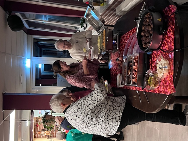 Daarna werd het stamppottenbuffet geopend. Boerenkool, hutspot, spruiten, worst, spekjes en gehaktballen – het kon niet op. Hoewel… aan het einde was er niet veel meer over. De borden werden rijkelijk gevuld en sommigen waagden zelfs een tweede (of derde) ronde.